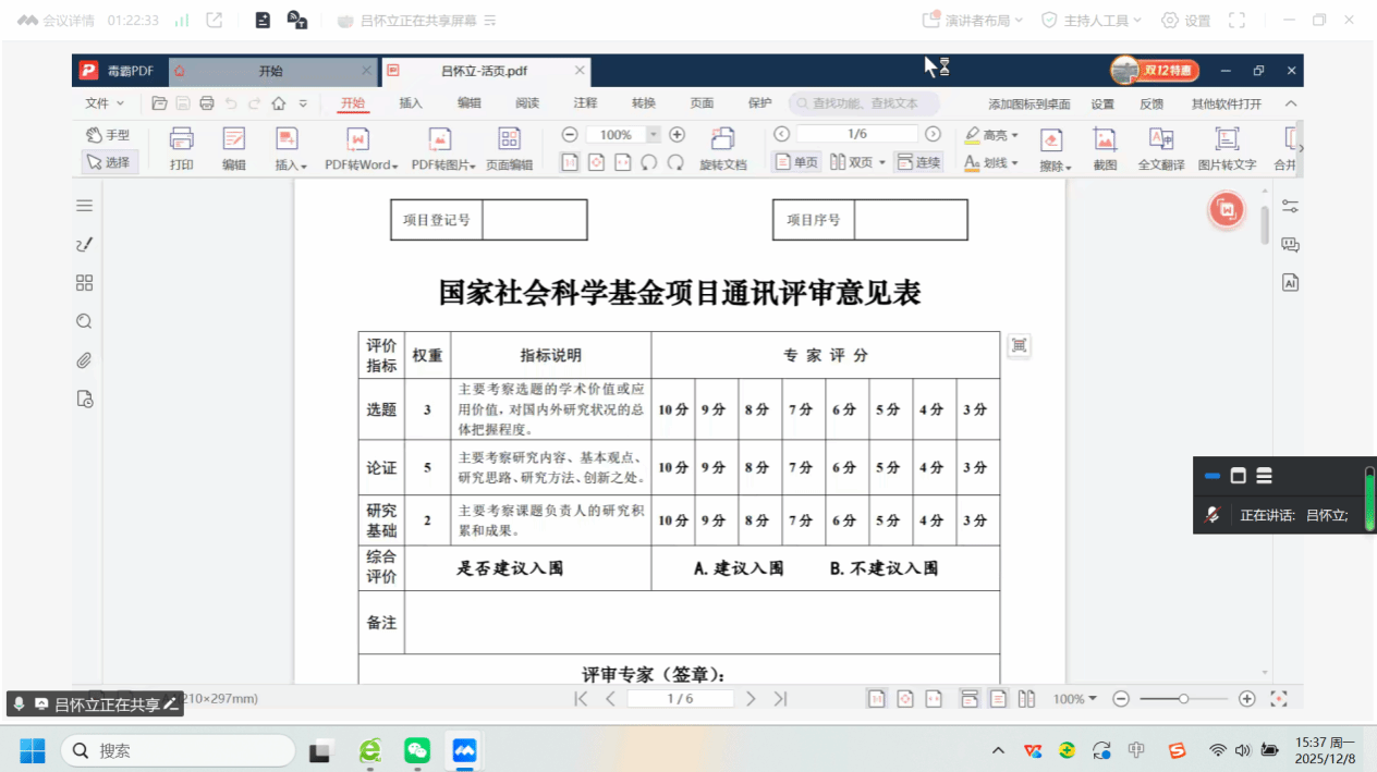 随后的课题项目交流汇报环节,多位教师依次分享了自身课题的研究框架、核心内容、进展情况及重难点。吕怀立教授针对每个课题进行精准点评,从选题聚焦、框架设计、内容深化、方法运用等方面提出具体优化建议,强调选题应进一步凝练聚焦,明确研究对象与核心问题,子课题设置需逻辑关联紧密,研究方法选择应契合研究内容且无需过度展开细节。