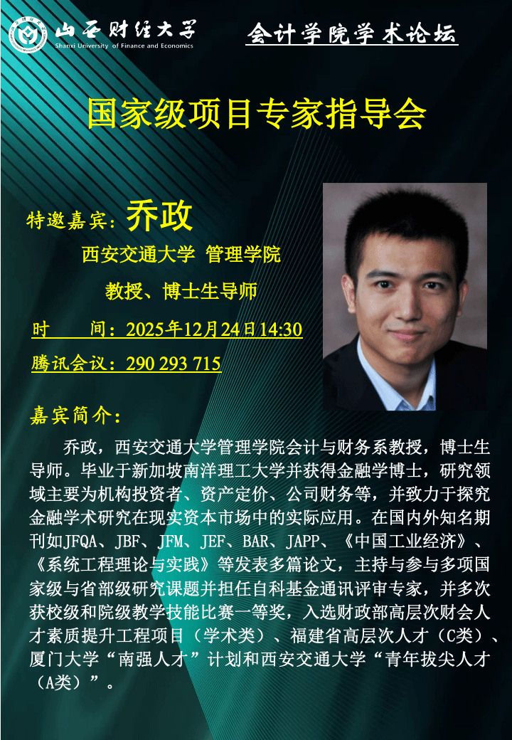 为帮助学院青年科研骨干教师及硕博研究生精准把握国家级课题申报要点,规避申报误区,提升申报质量与成功率,12月24日,我院特别邀请西安交通大学乔政教授担任主讲嘉宾,举办国家级课题申报经验交流分享会。